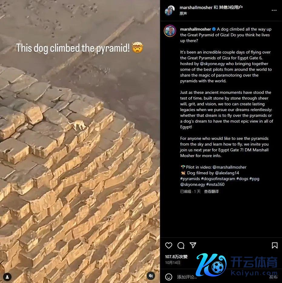 10月20号,一个叫“体验埃及”的账号也发了个视频,说拍到了狗狗从金字塔下来。经查询,这号是埃及旅游局的官号,应该照旧有一定实在度的。