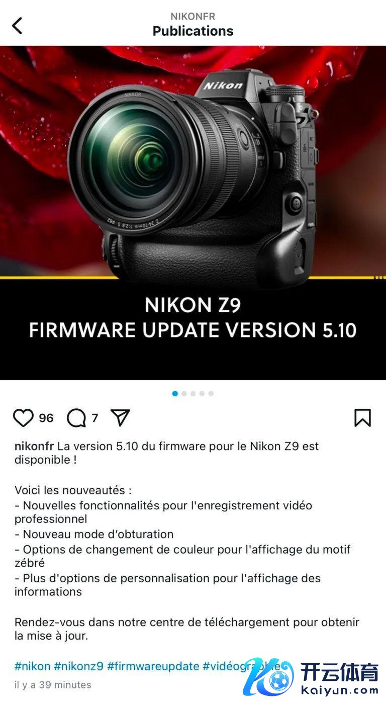 据悉,尼康法国公司在其Instagram搪塞媒体上曝光了Z9新的5.10版块固件骨子。新固件的更新骨子如下: