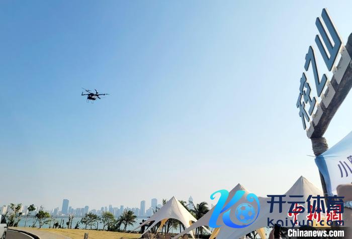 1月21日,海南飞行汽车欺诈示范岛初始庆典在海口太空之山驿站举行。图为飞行汽车“陆地航母”的飞行体在空中飞行。中新社记者王晓斌摄