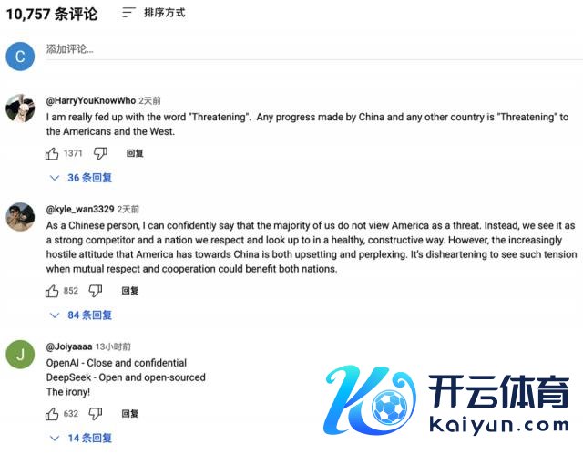 驳斥有上万条。其中一则高赞驳斥称受够了"羁系论",任何中国和其他国度的逾越齐是好意思国的"羁系";另一则驳斥拿 DeepSeek 与 OpenAI 作对比,说 DeepSeek 绽放开源,OpenAI 却顽固且脱色,颇具讪笑意味。
