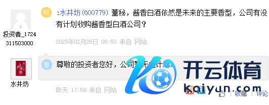 近日,有投资者在互动平台发问,酱香白酒已经是将来的主要香型,公司有莫得筹画收购酱香型白酒公司?